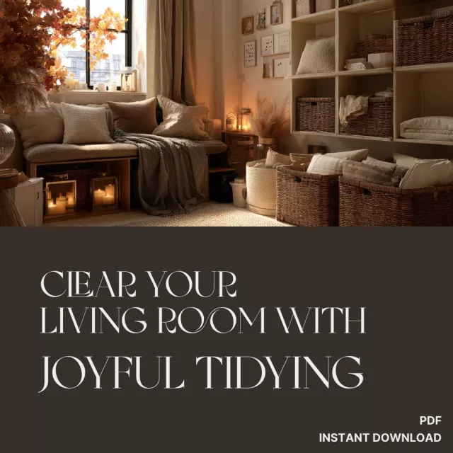Clear Your Living Room with Joyful Tidying | KonMari Living Room Guide | Digital Download for Home Decluttering | How to Start KonMari in Living Room