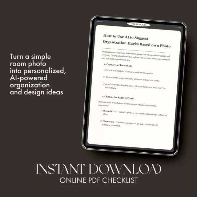 Overwhelmed by clutter or unsure where to start organizing? The How to Use AI to Suggest Organization Hacks Based on a Photo digital checklist is your ultimate guide to using smart technology for a cleaner, more functional space. Whether it’s your home, closet, or office, this practical download shows you step-by-step how to capture, upload, and analyze photos of your space—so AI can instantly suggest organization hacks tailored to you. Simple, quick, and surprisingly fun, this checklist turns chaos into calm with just one photo.