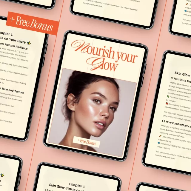 Your skin reflects what you nourish it with every day. Nourish Your Glow is a thoughtfully designed digital guide that shows you how everyday food choices can support a brighter, healthier-looking complexion. Instead of quick fixes or complicated routines, this guide focuses on simple, sustainable nutrition strategies that fit real life. If you’ve ever wondered why your skin looks dull despite trying “all the right things,” this guide helps you understand the missing link between food, habits, and glow.