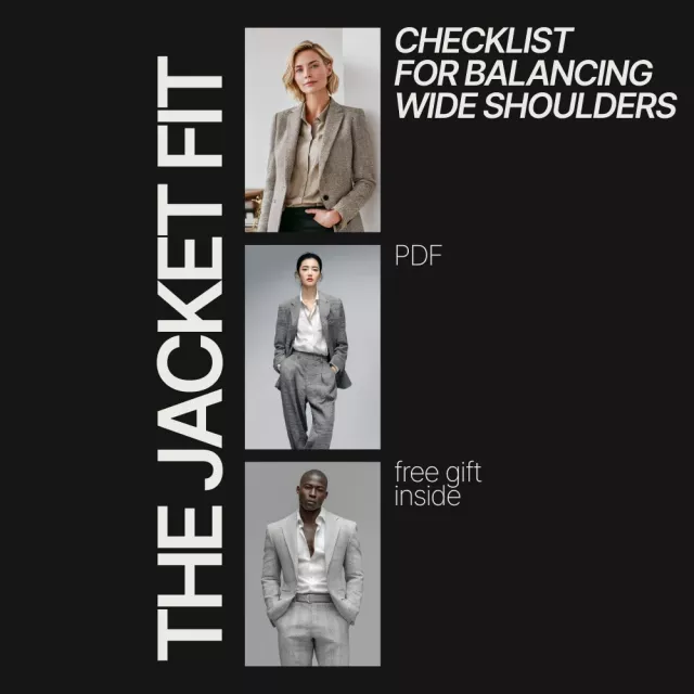 Whether you’re building a capsule wardrobe, shopping online, or refining your personal style, this checklist becomes a go-to reference you’ll use again and again. Download The Jacket Fit Checklist for Balancing Wide Shoulders today and start choosing jackets that truly work with your frame instead of against it.