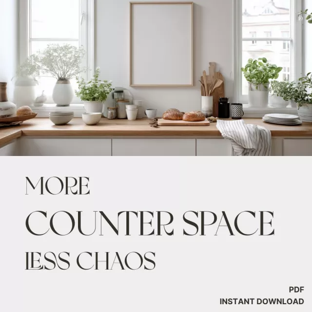 If your kitchen feels cramped, cluttered, or chaotic, this digital checklist is your shortcut to instant calm and clarity. The “More Counter Space, Less Chaos” Checklist is a smart, printable (or fillable) digital guide that helps you reclaim your counters, streamline your storage, and enjoy a more spacious, functional kitchen—without expensive remodels. Perfect for anyone who’s tired of feeling like there’s never enough room to cook, prep, or just breathe, this guide walks you step by step through practical, space-saving strategies that really work. Learn how to create more counter space using clever organization, simple decluttering, and even a touch of AI-powered design magic.
